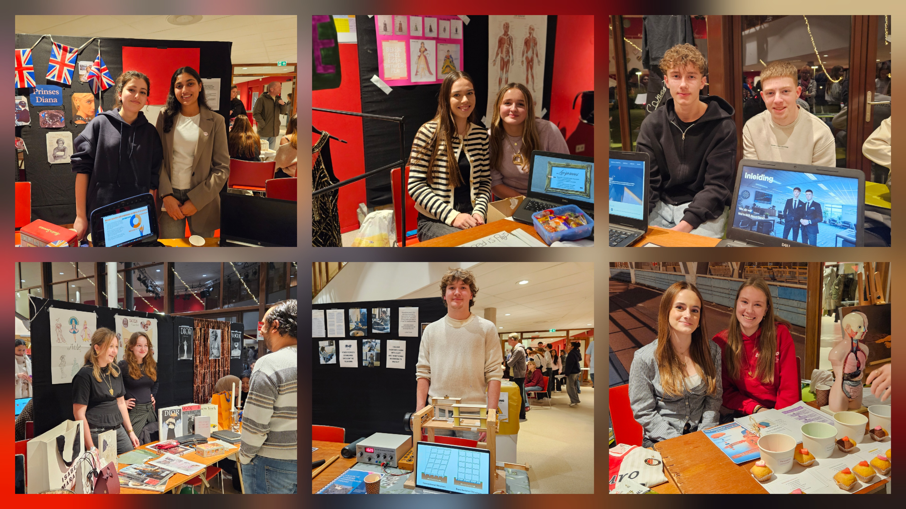 Altijd weer één van de leukste avonden van het schooljaar: de profielwerkavond. De leerlingen van 5-havo en 6-vwo presenteerden op donderdagavond 12 februari het resultaat van hun inspanningen van de afgelopen anderhalf jaar. In de aula stonden de leerlingen met hun kraampje op de markt, terwijl in de lokalen doorlopend 'podium'presentaties plaatsvonden. De bezoekers kregen de meest uiteenlopende onderwerpen te zien: de ontwikkeling van straattaal, een onderzoek naar de invloed van stress op de gezondheid, het ondernemingsplan van een eigen bedrijf, de geschiedenis van de mode, een model van een aardbevingproof gebouw en nog veel meer. Eén duo had als profielwerkstuk zelfs tot in de kleinste details de organisatie van het examenfeest voorbereid. Wat kunnen we weer trots zijn op onze leerlingen!
